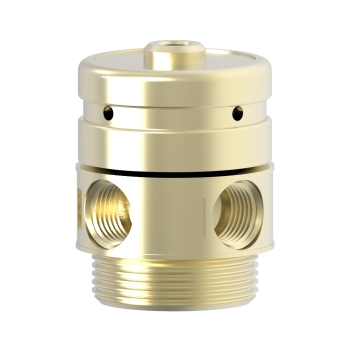 125 Series 1/8 pipe "Interface" valves are ultra-low pilot pressure bleed valves. Pilot signaling pressures as low as 0.1 PSIG effectively blocks the bleed orifice and the internal, full pressure completes the shift to the actuated position. Primary valve is classic Humphrey diaphragm poppet principle. Ideal for fluidics, proximity switching and air jet sensing.