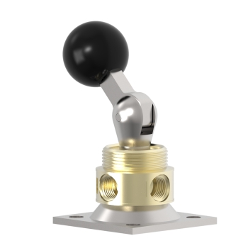 125V Series 1/8 pipe detented Toggle Valves feature the classic Humphrey diaphragm poppet principle. The unbalanced, air-spring return design assures bubble-tight sealing, both positions. Plug exhaust port for 2-way. Standard or brass body suitable for inline, base or panel mounting. Heavy duty lever has positive detent in both positions, and may be rotated for positioning.