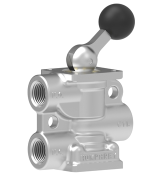 The 1/2 PIPE, 501 Series piston-poppet detented toggle valve achieves high flow and tight sealing from a compact body. Rugged, reliable in clean or poor air condtions. Select 2 or 3-way. 3-way models are multi-purpose (pipe normally closed or open). Multiple mounting options. Heavy duty lever may be rotated for positioning. Made in USA.