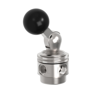 V125V Series 1/8 pipe detented Toggle Valves are configured specifically for vacuum service. They feature the classic Humphrey diaphragm poppet principle. The unbalanced design assures bubble-tight sealing, both positions. Plug exhaust port for 2-way. Standard or brass body suitable for inline, base or panel mounting. Heavy duty lever has positive detent in both positions and may be rotated for positioning.