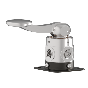 250T Series 1/4 pipe Fingertip Lever Valves feature the classic Humphrey diaphragm poppet principle. The unbalanced, air-spring return design assures bubble-tight sealing at rest and actuated. Rugged 2- or 3- way valves are available normally closed or open. Standard or optional brass body suitable for inline, base or panel mounting. Lever can be rotated for positioning.
