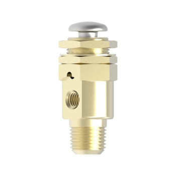 Three way miniature Push Button valve, normally closed, spring return with 10-32 UNF ports. All TAC Push Button valves feature an attractive, work hardened SST button above a 15/32-32 threaded collar. Feature permits panel mounting or acceptance of TAC Manual Operators (sold separately - see Related Products, below). Button bottoms out on collar to prevent valve overstroke. Compact. Rugged.