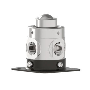 250B Series 1/4 pipe Roller Ball type mechanical valve features the classic Humphrey diaphragm poppet principle. The unbalanced, air-spring return design assures bubble-tight sealing actuated, and unactuated. Rugged 2 or 3-way valves are available normally closed or normally open. Standard or optional brass body suitable for inline or base mounting.