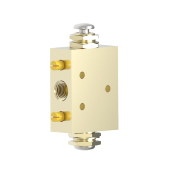 Four way miniature double Push Button valve, detented with 1/8 pipe ports. All TAC Push Button valves feature work hardened SST button plungers above 15/32-32 threaded collars. Feature permits panel mounting or acceptance of a variety of TAC Mechanical Operators (sold separately - see Related Products below). Button is rounded for minor "off center" hits and bottoms out on collar to prevent valve overstroke. Compact. Rugged. Simple exhaust port flow controls included.