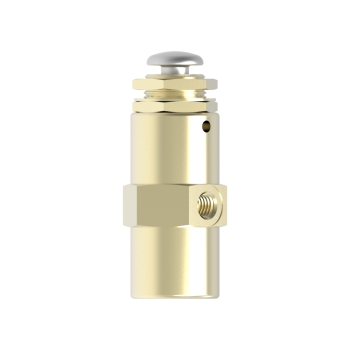 Four way miniature Push Button valve, spring return with 10-32 UNF ports. All TAC Push Button valves feature an attractive, work hardened SST button above a 15/32-32 threaded collar. Feature permits panel mounting or acceptance of a variety of TAC operators. Button bottoms out on collar to prevent valve overstroke. Compact. Rugged.