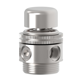 125P Series 1/8 pipe Push Button Valves feature the classic Humphrey diaphragm poppet principle. The unbalanced, air-spring return design assures bubble-tight sealing at rest and actuated. Compact design permits close proximity mounting to work and fast cycling/quick exhaust. Rugged 2- or 3- way valves are available normally closed or open. Standard or optional brass body suitable for inline, base or panel mounting.