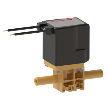 iDP 350 Series 2-port solenoid valve is ideal for control of bodily fluids, aggressive chemicals and cleaning fluids, and at elevated liquid temperatures. Made of Radel body material and choice of FFKM, FKM or EPDM diaphragm-poppet elastomers. Strong return spring seals valve tight. Coil is encapsulated and Loctite™ impregnated for wet environments. Inline or manifold mount body configurations.
