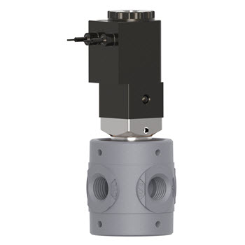 The B250E1 Series 3 Port Diaphragm-Poppet Pneumatic Solenoid Valve shifts crisply / seals tight with each cycle. Unique inert construction is simple, with few parts. Very reliable, even when controlling poor, moisture laden air. Smart choice in critical clean dry air applications. Exceptional flow capacity with 1/4 inch orifice, 1/4 ports. Select normally closed or normally open function, plug-in or lead wire electrical entry and either 12VDC, 24VDC or 120VAC voltage. Operates from 30-125psi compressed air. Optional fluorocarbon diaphragms (buna standard). Plug exhaust port for excellent 2-way function. Mounting base and pipe plug sold separately.